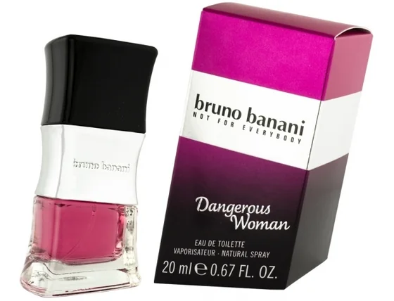 Bruno Banani Dangerous Woman е много очарователен и чувствен дамски аромат, който е създаден за всички самоуверени жени. Носителят на аромата Dangerous Woman е естествено общителен, обича флирта, модата и никога не трябва да отсъства от нито едно клубно събитие. Веднага в началото на аромата Bruno Banani Dangerous Woman ще бъдете пленени от сочните акорди на касис. Сладки кокосови нотки и деликатни флорални нотки проникват в сърцето. Базата на аромата е изградена от завладяващия аромат на хелиотроп, а финалният щрих е нарисуван от вълнуващата ванилия. Можете да носите този изключителен дамски парфюм от много популярната марка Bruno Banani през целия ден. Бутилката на аромата е проектирана в типичния си скос и е вдъхновена от образа на секси, очарователна млада жена в розова рокля, която обича да танцува. Влюбете се в необуздания дамски аромат Bruno Banani Dangerous Woman и се отървете от задръжките! Лице на новия аромат е бразилският топмодел Аманда Брандао, която перфектно въплъщава концепцията на аромата Dangerous Woman - тя е секси, забавна, предизвикателна, спонтанна, неустоима, обича да общува и да флиртува.