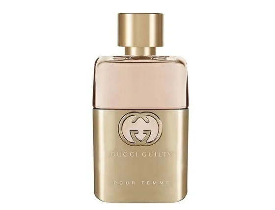 Изследвайте всичките си мечти и най-скрити желания с парфюмната вода Gucci Guilty Pour Femme, която е толкова смела и незабравима, колкото и жената, която я носи. Във връхните нотки сокът от мандарини и бергамот се смесват с аромата на съблазнителен розов пипер. Сърцето се състои от опияняваща комбинация от люляк, рози, теменужки и масло от карамфил. Благодарение на тази комбинация ще бъдете незабравими във всяка ситуация. Базата, която свързва всички акорди заедно, е съставена от топъл кехлибар и наситено пачули.