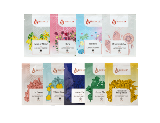 Опитайте всички любими аромати на Issencia без ангажименти! Този практичен „discovery set“ съдържа 9 уникални парфюма за пране (по 7 ml всеки) – Bambino, Dreamcatcher, Flora, King of Ylang, Femme Fatale, Green Allure, Citrus Dream, La Donna и Jasmine & Ylang Elixir. Перфектен начин да откриете своя любим стил аромат, независимо дали предпочитате свежест, цветя или ориенталска дълбочина. Чудесна възможност да изпробвате цялата гама аромати Issencia на изгодна цена с бърза доставка и гаранция за удовлетворение.