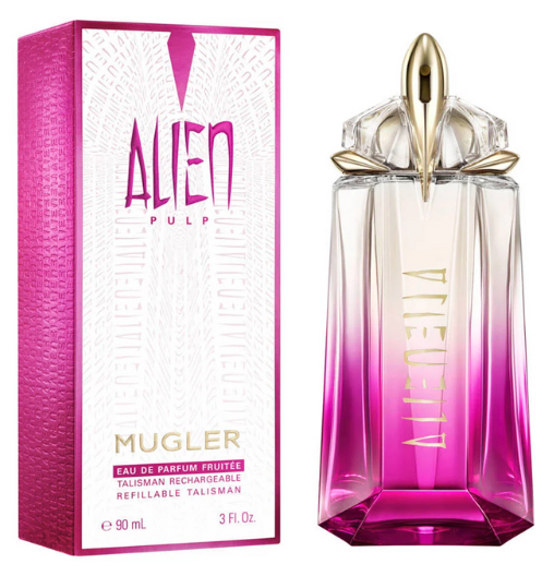 Парфюмната вода Mugler Alien Pulp е вдъхновена от неустоимия, сочен акорд на розова малина, който пленява със своята съблазнителна сладост. Тази жива сладост плавно се съчетава с кремообразен екстракт от жасмин, докато нежният, ефирен мускус обгръща композицията с топъл воал, напомнящ естествения аромат на кожата. Заедно тези нотки улавят същността на модерната женственост – игрива, чувствена и естествено привлекателна.