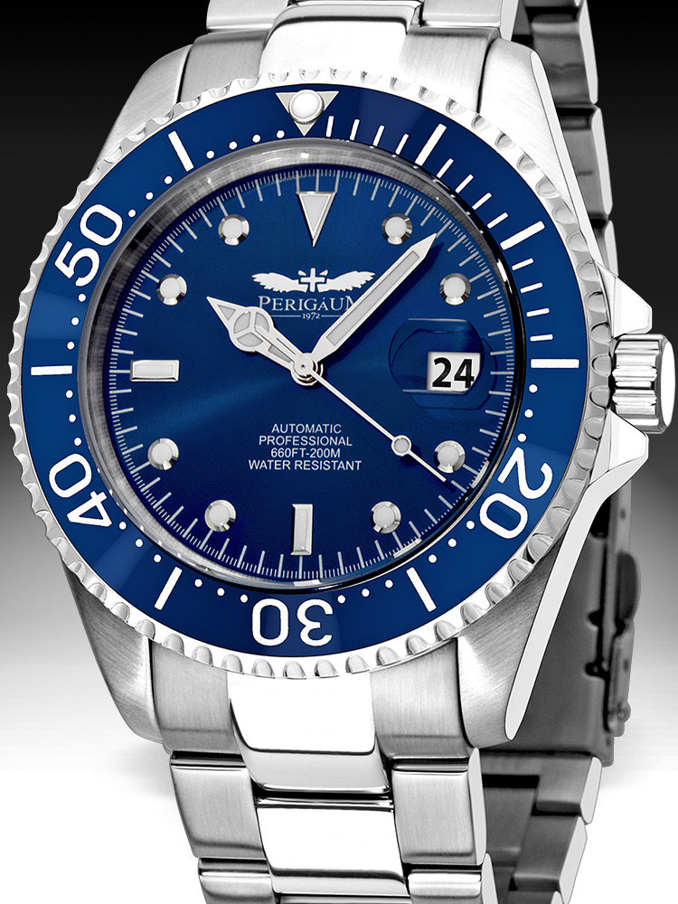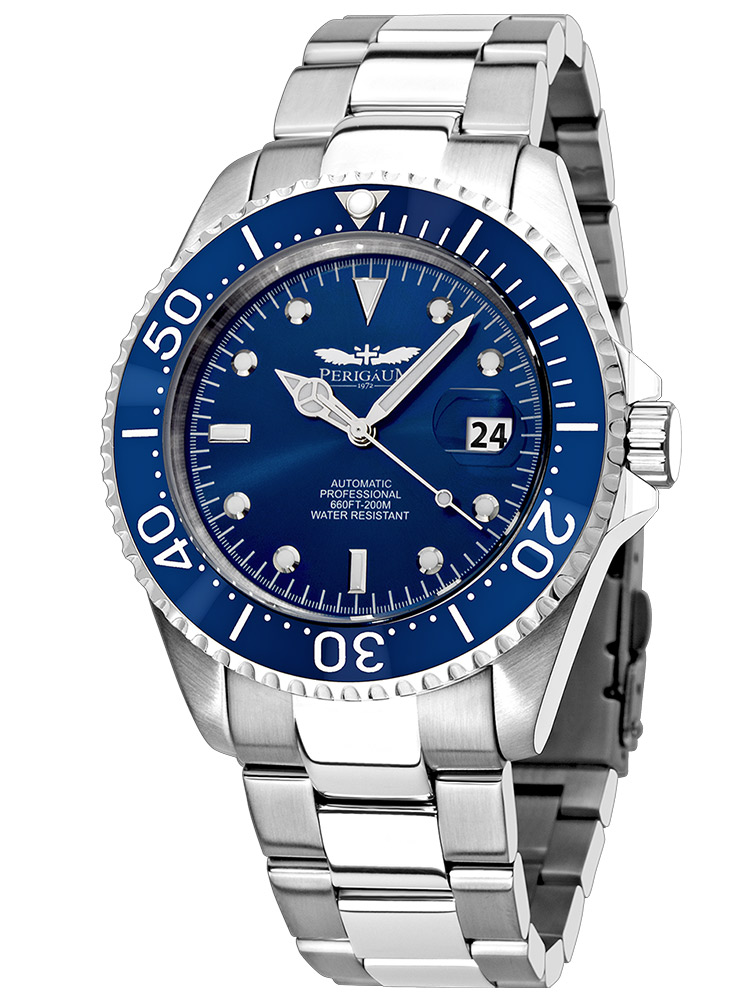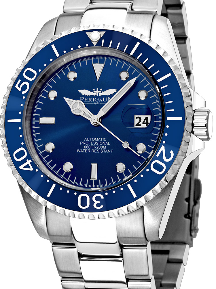Мъжкият часовник Perigaum Pro-Diver P-1308-SS-BL Automatic Silver Blue 43mm 200M ще добави елегантност и ще подчертае стила ви. С качествената изработка на Perigaum не е нужно да се притеснявате, че ще сбъркате.