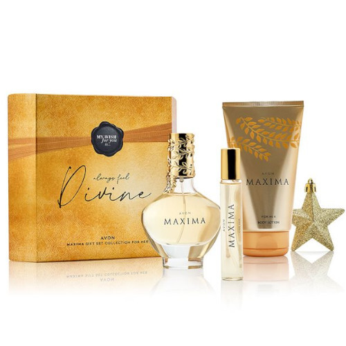 Комплектът съдържа: Eau de Parfum Maxi ma EDP 50 ml Eau de Parfum Maxi ma EDP - мини опаковка 10 ml Лосион за тяло Maxi ma 150 ml