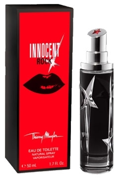 Thierry Mugler Angel Innocent Rock е флорално-плодов аромат, лимитирана серия за 2008 година. Парфюмът е предназначен за всички необуздани личности, които обичат музиката, защото ароматът е вдъхновен от нея. Компонентите на аромата бият в ритъма на рок и денс поп музика. Парфюмът е чувствена комбинация от грейпфрут, черен пипер, роза и личи. Ароматът е подходящ за всички жени, които се държат както намерят за добре. Те умеят да бъдат невинни и на следващия ден ще ви изненадат със съблазнителност, чувственост и провокативност, каквито не бихте очаквали от тях. Няма повод, за който този парфюм да не е идеален, подходящ е както за деня, така и за по-празничните вечерни поводи. Ароматът е подходящ за мистериозни души, които никога не разкриват всичко за себе си и обичат да оставят малките си тайни да излязат наяве в най-подходящия момент. С парфюма Thierry Mugler Angel Innocent Rock можете да бъдете различни всеки ден, ароматът се адаптира към всяко ваше настроение и се превръща във вашата втора кожа.