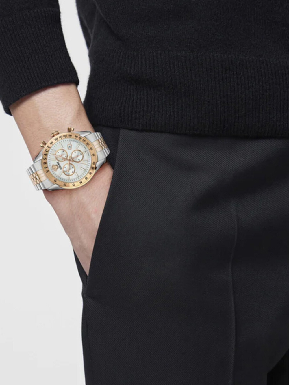Така че не се колебайте да изпъстрите стила си с ръчния часовник Versace VE8R00424 Mens Watch Chrono Master 44mm 5ATM .